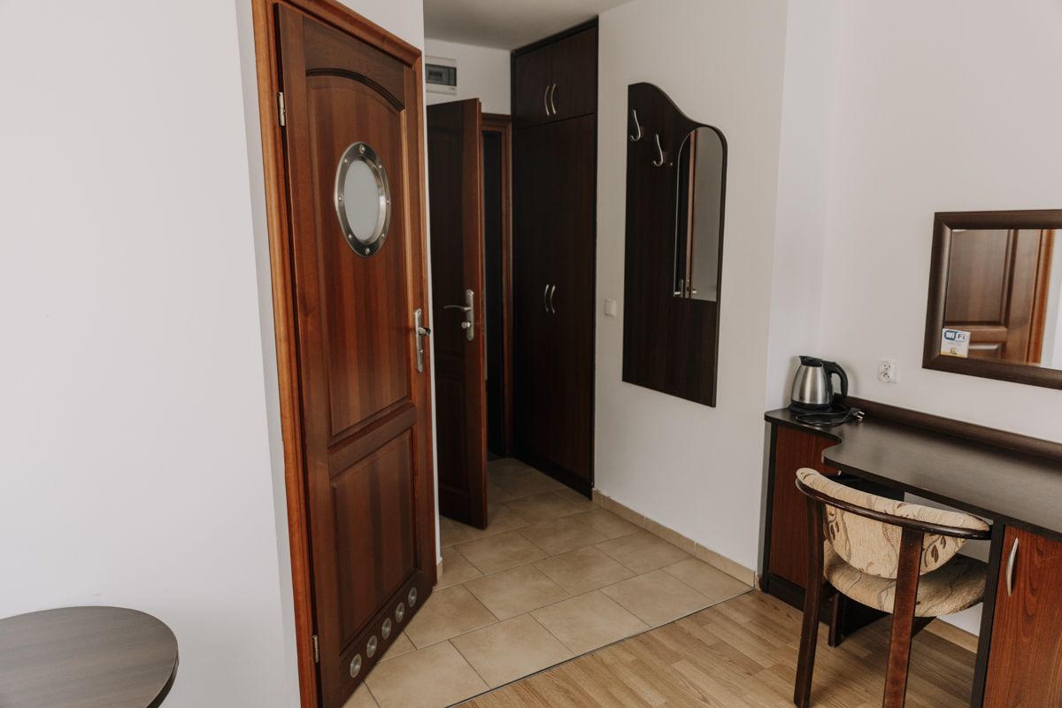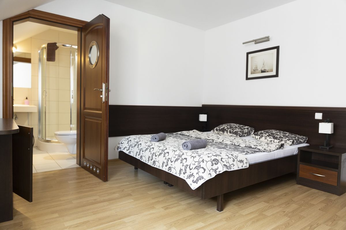 Komfortowy pokój dwuosobowy typu Deluxe idealnie sprawdzi się dla par lub rodziny 3-osobowej podczas nadmorskiego wypoczynku. Pokój wyposażony jest w wi-fi, TV, lodówkę, czajnik oraz łazienkę, w skład której wchodzi kabina prysznicowa. W obiekcie znajduje się ogólnodostępny, w pełni wyposażony aneks kuchenny oraz kącik z grami planszowymi i puzzlami. Nasz obiekt akceptuje zwierzęta, za które pobierana jest dodatkowa opłata w wysokości 30zł/noc. Na życzenie gości przybywających z małymi dziećmi do 3 lat zapewniamy wygodne, bezpieczne łóżeczko płatne 30zł/noc. Istnieje również możliwość wstawienia dostawki, która jest płatna 90zł/noc dla osób powyżej 4 roku życia. W okresie wakacyjnym (21.06. - 31.08.) parking na terenie obiektu jest płatny 18zł/dobę.