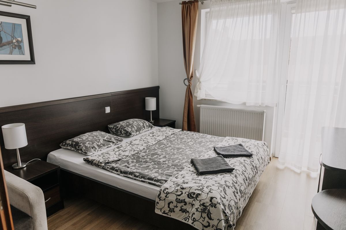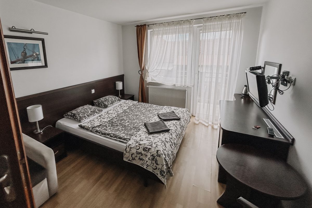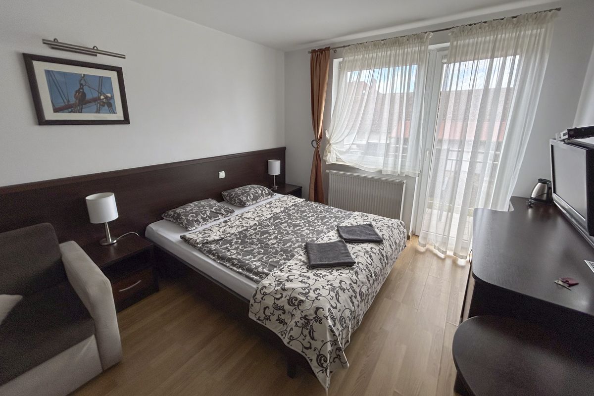 Komfortowy pokój dwuosobowy typu Deluxe z balkonem idealnie sprawdzi się dla par lub rodziny 3-osobowej podczas nadmorskiego wypoczynku. Pokój wyposażony jest w wi-fi, TV, lodówkę, czajnik oraz łazienkę, w skład której wchodzi kabina prysznicowa. W obiekcie znajduje się ogólnodostępny, w pełni wyposażony aneks kuchenny oraz kącik z grami planszowymi i puzzlami. Nasz obiekt akceptuje zwierzęta, za które pobierana jest dodatkowa opłata w wysokości 30zł/noc. Na życzenie gości przybywających z małymi dziećmi do 3 lat zapewniamy wygodne, bezpieczne łóżeczko płatne 30zł/noc. Istnieje również możliwość wstawienia dostawki, która jest płatna 90zł/noc dla osób powyżej 4 roku życia. W okresie wakacyjnym (21.06. - 31.08.) parking na terenie obiektu jest płatny 18zł/dobę.