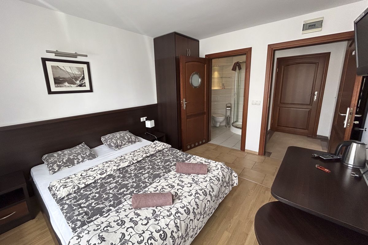 Komfortowy pokój dwuosobowy typu Komfort idealnie sprawdzi się dla par podczas nadmorskiego wypoczynku. Pokój wyposażony jest w wi-fi, TV, lodówkę, czajnik oraz łazienkę, w skład której wchodzi kabina prysznicowa. W obiekcie znajduje się ogólnodostępny, w pełni wyposażony aneks kuchenny oraz kącik z grami planszowymi i puzzlami. Nasz obiekt akceptuje zwierzęta, za które pobierana jest dodatkowa opłata w wysokości 30zł/noc. Na życzenie gości przybywających z małymi dziećmi do 3 lat zapewniamy wygodne, bezpieczne łóżeczko płatne 30zł/noc. W okresie wakacyjnym (21.06. - 31.08.) parking na terenie obiektu jest płatny 18zł/dobę.