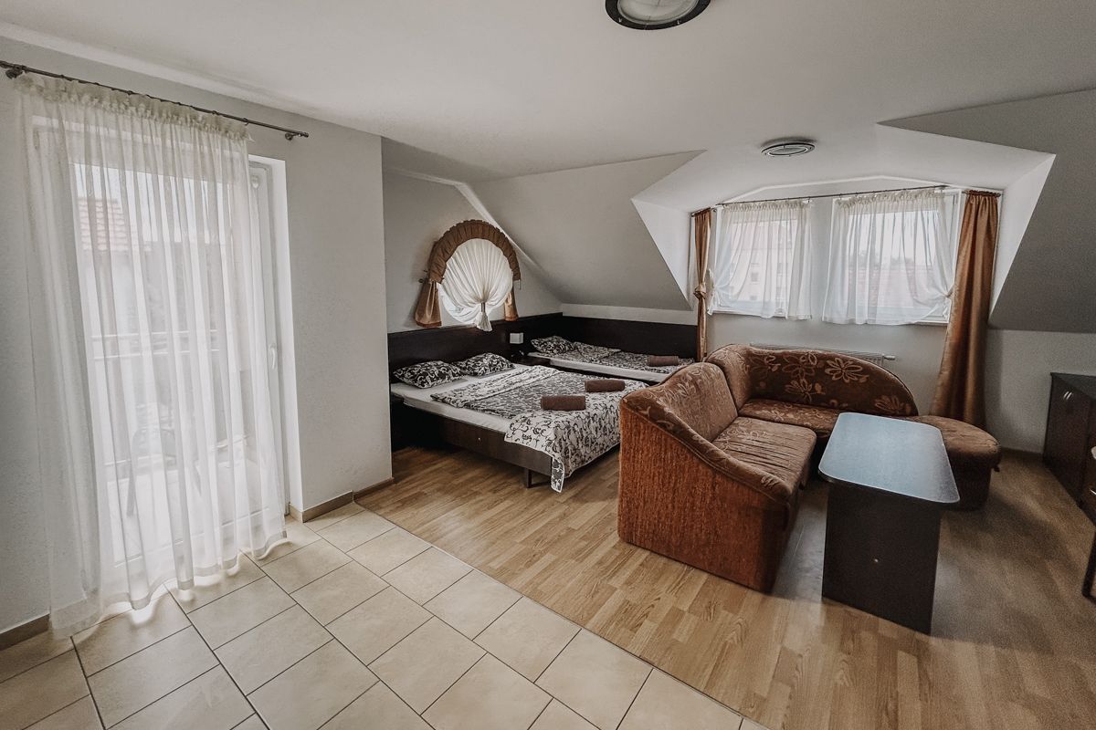 Ten komfortowy pokój z balkonem będzie świetnym wyborem dla rodziny podczas nadmorskiego wypoczynku. Pokój wyposażony jest w wi-fi, TV, lodówkę, czajnik oraz łazienkę. W obiekcie znajduje się ogólnodostępny, w pełni wyposażony aneks kuchenny oraz kącik z grami planszowymi i puzzlami. Nasz obiekt akceptuje zwierzęta, za które pobierana jest dodatkowa opłata w wysokości 30zł/noc. Na życzenie gości przybywających z małymi dziećmi do 3 lat zapewniamy wygodne, bezpieczne łóżeczko płatne 30zł/noc. Istnieje również możliwość wstawienia dostawki, która jest płatna 90zł/noc dla osób powyżej 4 roku życia. W okresie wakacyjnym (21.06. - 31.08.) parking na terenie obiektu jest płatny 18zł/dobę.